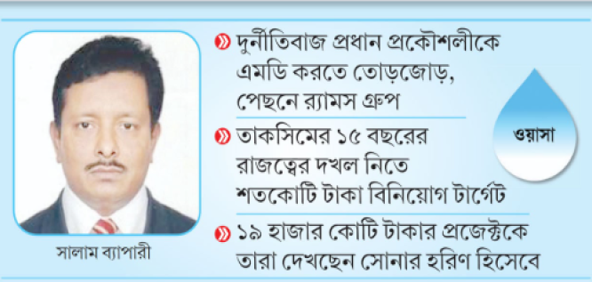 ওয়াসার ভেতরের অনেক কর্মকর্তা এই প্রক্রিয়াকে ‘পছন্দের লোক বসানোর খেলা’ বলছেন। তাঁদের অভিযোগ, আব্দুস সালামের বিরুদ্ধে অতীতে দুর্নীতির অভিযোগ ছিল, যার কারণে তাকসিম এ খানের সময়ে তাঁকে প্রায় চার বছর সংযুক্ত অবস্থায় (ওএসডি’র মতো) বসিয়ে রাখা হয়েছিল। পরে বিগত সরকারের পতনের পর তিনি নিজেকে ‘বঞ্চিত কর্মকর্তা’ দাবি করে প্রভাব খাটিয়ে নিজের বিরুদ্ধে থাকা বিভাগীয় মামলা প্রত্যাহার করান।