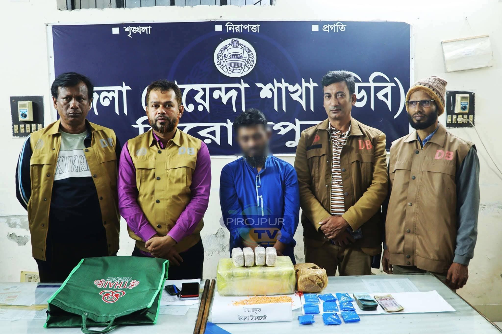 পিরোজপুর জেলা প্রতিনিধিঃ ১৬/১১/২০২৫ খ্রিঃ তারিখ দুপুর ১৩:৩৫ ঘটিকায় গোপন সংবাদের ভিত্তিতে পুলিশ সুপার পিরোজপুর জনাব খাঁন মুহাম্মদ আবু নাসেরের সার্বিক দিক নির্দেশনা অনুসারে জেলা গোয়েন্দা শাখা (ডিবি), পুলিশের অফিসার ইনচার্জ মোঃ আরিফুল ইসলাম ও এসআই (নিরস্ত্র)/মোঃ শহিদুল ইসলাম নেতৃত্বে সংগীয় অফিসার ফোর্স কর্তৃক একটি সফল অভিযান পরিচালিত হয়। উক্ত অভিযানে মাদকবিরোধী বিশেষ তৎপরতার অংশ হিসেবে পিরোজপুর সদর থানাধীন ৫নং ওয়াড কপুড়িয়া পট্টি, আলহামদুলিল্লাহ মার্কেট এর ৫ম তলা ভবনের ৪র্থ তলায় আসামী মোঃ মিজানুর জামান (৪৮) এর শয়ন কক্ষে ওয়াড্রবের মধ্যে ০১টি কাপুরের ব্যাগের মধ্যে ০১টি নীল রংয়ের জিপারে ২০০ পিস করে, (২০০x৩০০)=৬০,০০০ (ষাট হাজার) পিস কথিত নেশাজাতীয় মাদকদ্রব্য ইয়াবা ট্যাবলেট’সহ ০১ (এক) জন মাদক পেশাদার ব্যবসায়ীকে গ্রেফতার করে।