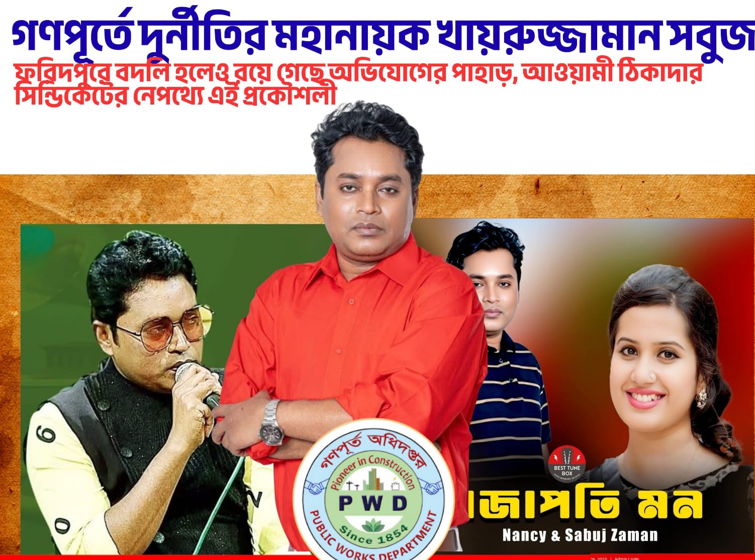 ফরিদপুর প্রতিনিধিঃ ফরিদপুর গণপূর্ত বিভাগের নির্বাহী প্রকৌশলী খায়রুজ্জামান সবুজের বিরুদ্ধে ভয়াবহ দুর্নীতি ও অনিয়মের অভিযোগ উঠেছে। পিরোজপুর, মুন্সীগঞ্জ ও নরসিংদীতে দায়িত্ব পালনকালে তিনি ক্ষমতাসীন দলের ঘনিষ্ঠ ঠিকাদারদের কাজ পাইয়ে দিতেন বলে অভিযোগ রয়েছে। স্থানীয় সূত্র জানায়, তিনি নির্বাচিত ঠিকাদারদের কাছ থেকে প্রকল্পের টাকার ১০ থেকে ১৫ শতাংশ পর্যন্ত কমিশন আদায় করতেন।