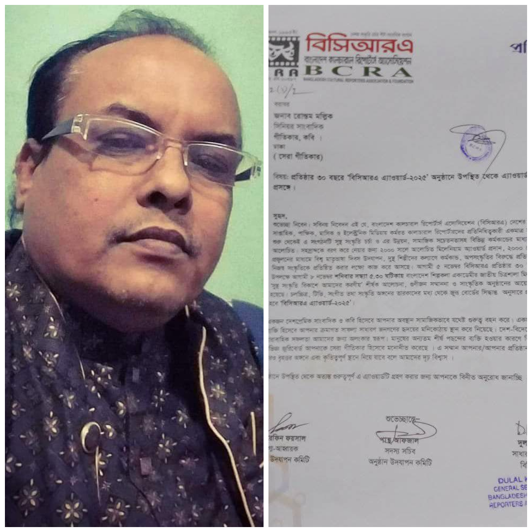 বিনোদন প্রতিবেদকঃ বাংলাদেশ কালচারাল রিপোর্টার্স এসোসিয়েশন ( বিসিআরএ) এর ৩০ তম প্রতিষ্ঠা বার্ষিকী উপলক্ষ্যে প্রদত্ত দেশের গুনী শিল্প সাংস্কৃতিক ব্যাক্তিত্বদের কর্মের স্বীকৃতি ও সম্মাননা অনুষ্ঠান আগামী ৮ নভেম্বর ২০২৫ বাংলাদেশ শিল্পকলা একাডেমি, সেগুনবাগিচা ঢাকায় অনুষ্ঠিত যাচ্ছে।