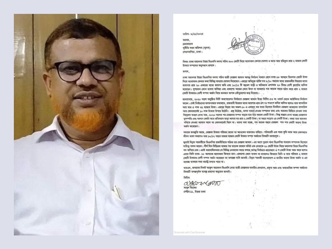 চিঠিতে আরও বলা হয়, “মোস্তফা জামান প্রকাশ্যে দাবি করেছেন, প্রয়োজনে তিনশত কোটি টাকা খরচ করে হলেও তিনি ঢাকা-১৮ আসনের মনোনয়ন নিশ্চিত করবেন। প্রকাশ্যে কোনো ব্যবসা-বাণিজ্য না থাকলেও কীভাবে তার পরিবার হাজার হাজার কোটি টাকার সম্পদের মালিক হলো—দুদকের উচিত বিষয়টি নিরপেক্ষভাবে অনুসন্ধান করা।”